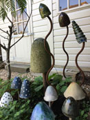 Wire & Ceramics for shelf sitting or Garden. Cane tops, Plant supports, Mushrooms, Plant markers